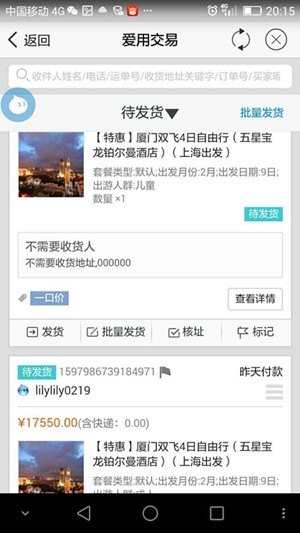 上海游客拍下厦门五星自由行产品