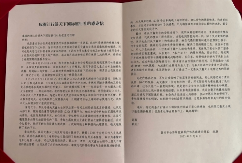 —— 赵康《致浙江行游天下国际旅行社的感谢信》